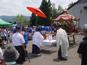 地域の安全、繁栄を祈り神主の御祓いをうけました |