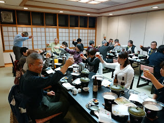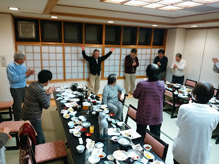 11月22日(日)午前は参加者を募り、長野県飯山市の飯山手すき和紙工房と高野辰之記念館見学に行って来ました。手すき和紙工房ではハガキサイズを体験して来ました。冷たい水の中に木のこうぞうの繊維が入っていて、それをハガキサイズの型ですく作業を繰り返し最後に押し花を貼り付け乾燥させて出来上がり。はじめてにしては「良く出来た」と皆さん自画自賛でした。