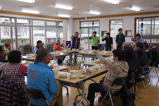 11月22日(日)午前は参加者を募り、長野県飯山市の飯山手すき和紙工房と高野辰之記念館見学に行って来ました。手すき和紙工房ではハガキサイズを体験して来ました。冷たい水の中に木のこうぞうの繊維が入っていて、それをハガキサイズの型ですく作業を繰り返し最後に押し花を貼り付け乾燥させて出来上がり。はじめてにしては「良く出来た」と皆さん自画自賛でした。