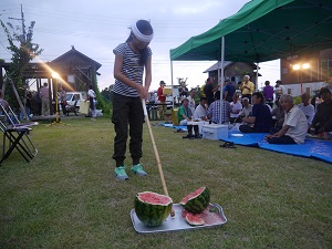 夕方5時から「賽の神点火」が行われ夕暮れに浮かぶ炎に当り、ご神酒をいただきながら参加者みんなで今年一年の無病息災をお祈りしました。