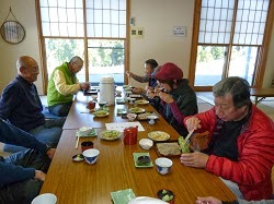 周りの雪も無くなり、快晴が続くGWに合わせて多くの入居者が家族を連れて、クラインガルテン妙高に滞在されました。この時期に合わせて、今年度最初の交流イベントが賑やかに行われました。5月4日には、午前は野菜講習会をクラインガルテン応援隊の江添氏を講師に迎え、野菜作りの基本「畑の土作り」や「畑の畝作り」、「連作障害」等を教わり、質疑応答へと内容の濃い講習を受けました。午後からは山菜採りにクラインガルテンOB地元在住の方の案内で近くの山に入り、こごみ、うど、うるい、タラの芽などの収穫に参加者は満足でした。