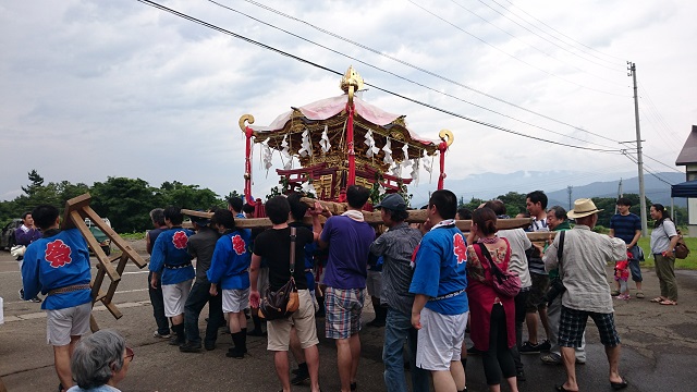 火まつり お神輿in大洞原 投稿:2017年7月16日 今日7月16日(日)は大洞原にお神輿が来る日です。 お神輿は関山神社「火まつり」のお神輿で、地域をぐるぐるっとねり歩きますが(車で)、クラインガルテンのある大洞原地区にはちょうどお昼頃到着するため、お神輿を担ぐ若い衆に、お昼を振る舞います。地元の方と、クラインガルテン妙高のみなさんで、例年どおり焼きそばを100食程度つくりました!ご協力いただいた皆様ありがとうございました。
