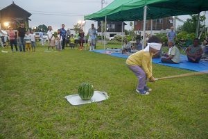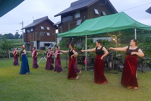 スタートは作曲家荒木とよひささんが妙高をモチーフに作られた「四季の歌」を全員で合唱を行いました。その後は、入居者のいい男バンド演奏、子供たちのスイカ割り、フラダンスショー、最後は都内で活躍している入居者のバンドチーム「DMO」の中高年の青春時代の思い出の曲を中心に歌って踊れる曲に参加者も大いに盛り上がりました。
