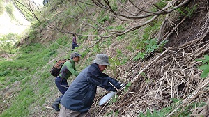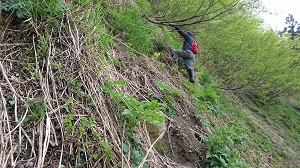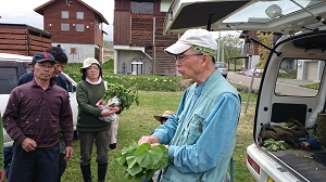 ♢山菜採り講習会開催♢ 投稿:2016年4月24日 今日は山菜採り講習会を行いました。新加入の2組を交え、応援隊の3名の案内で近くの山に入って行きました。今年は雪解けが早く、山菜も例年よりだいぶ早く出ています。初めての参加者は斜面に足を取られたり、滑り落ちたりしながらも教えられたウドやふき、葉ワサビなどの収穫に満足されたようです。