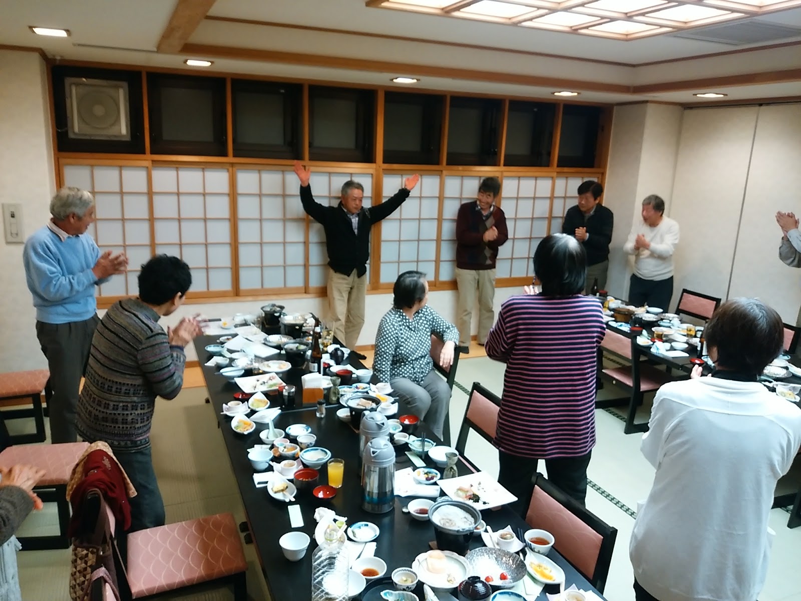 今年も12月5日に忘年会交流会が休暇村妙高で、入居者、OB、応援隊、事務局参加で賑やかに行われました。送迎バスが夕方交流広場を出発、休暇村には10分くらいで到着、さすがに標高が高く周りには雪が10センチほど積もっておりました。早速みんなで温泉にゆっくり浸かり、ほかほかになった所で宴会場へ。料理良し、酒良し、一年間の活動を振り返り思い思いに楽しい忘年交流会を過ごしました。