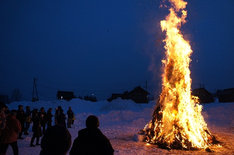 昨年よりクラインガルテンの住人と、地元大洞原地区住民の合同で、クラインガルテン妙高のすぐ隣りで開催されるようになり、当日はさいの神の準備、餅つき大会、夕方にさいの神点火という流れにで、1日にぎやかになります。