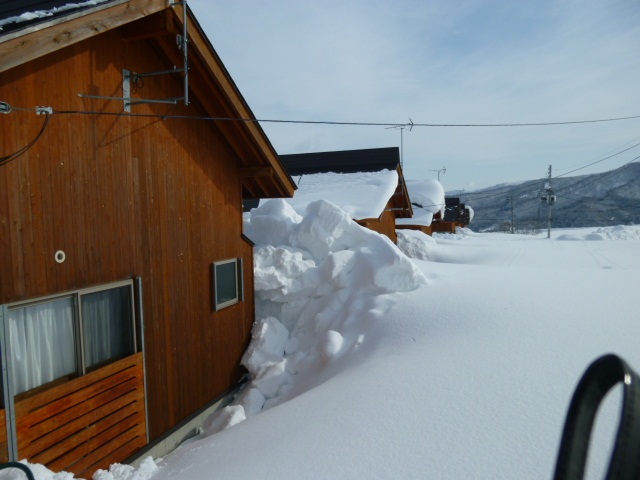 屋根の雪も、もう落ちるスペースがあまり無く、屋根とつながりそうです。